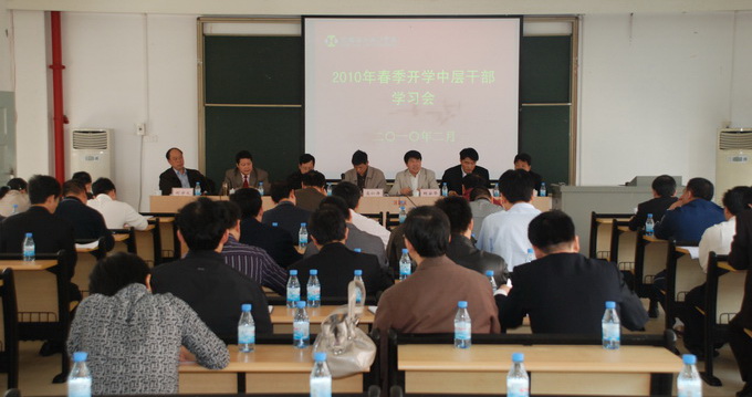 我校2010年春季开学中层干部学习会于本月26日在教学楼召开。高仁泽书记强调,要切实提高执行力,加强作风建设。会议由刘安华校长主持。