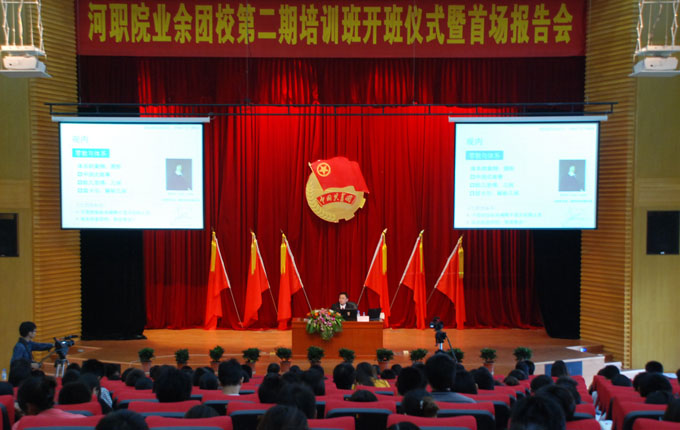 10月29日,我校业余团校第二期培训开班仪式在学术报告厅举行。我校党委办公室主任、学工处处长、团市委组宣部部长、团委相关负责人及业余团校第二期培训班全体学员出席了此次仪式。