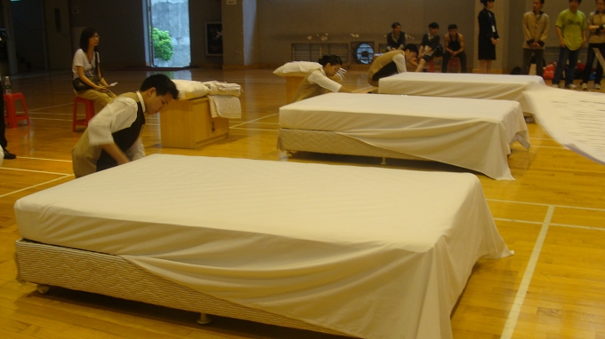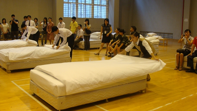 我校代表队以旅游与经济系主任俞彤为领队,黄蔚红、史万莉为指导教师, 选派2007级酒店管理班罗毅、曾庆伟、崔海新、张满芬、蔡正添、邓小龙6名同学分别参加了中餐摆台、餐巾折花、斟酒个人项目及团体项目与客房中式铺床个人项目及团体项目比赛,在比赛中,我校参赛选手在整体形象、个人礼貌礼仪、职业气质和服务技能等方面表现出色,给其他院校的参赛师生留下了深刻的印象,提升了我校旅游管理专业在省内高职院校中的地位。