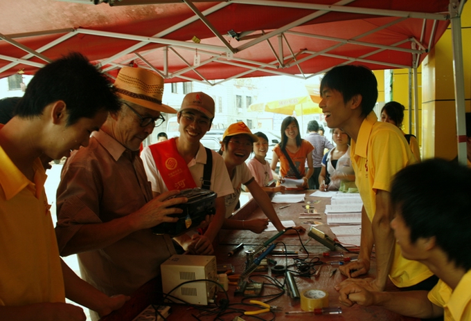 2008年暑期大学生“三下乡”社会实践活动中的我校义务维修队
