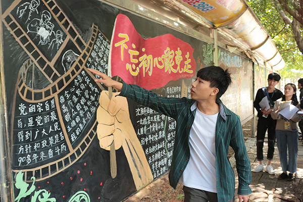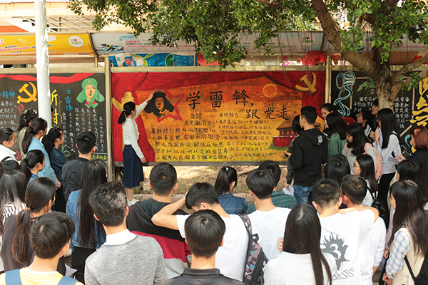 (校团委通讯员 黄志远 学生文字记者 祝仲良 罗丽华)3月23日,我校团委于学校A区饭堂门口开展“不忘初心跟党走”为主题的学雷锋志愿服务行动黑板报评比活动。我校九大学生组织代表及各二级学院学生干部代表均参加了此次评比活动。