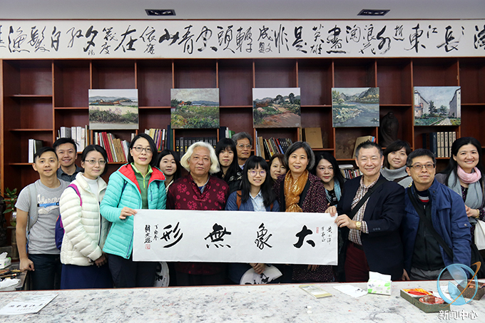 当天上午,在赖小景的陪同下,参访团一行先后参观了我校学术交流中心大益爱心茶室、创新技能大赛作品展及骆文冠艺术区等。本次参访团团长、台湾中山大学黄小萍教授及领队罗台生教授还与国家一级美术师、中国美术家协会会员、广东省美协理事骆文冠进行面对面交流。骆文冠现场挥毫,代表我校将现场书写的墨宝“博雅达观”赠与台北科技大学。