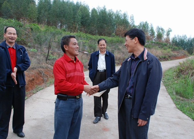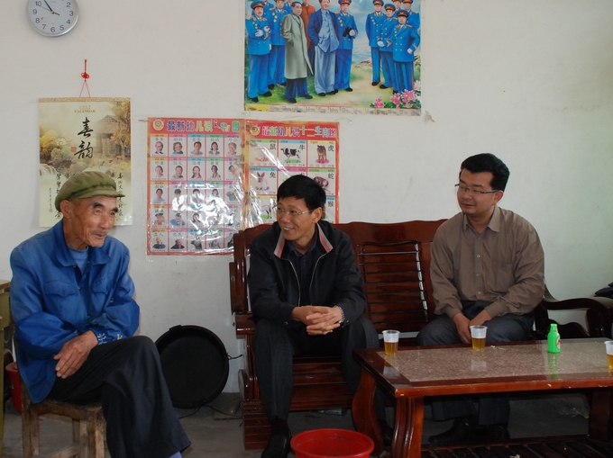在听取了涧新村委会的汇报后,高仁泽书记前往看望老党员赖碗城。赖碗城1958年入党,今年76岁,四个儿子中三个都是党员,他本人当了几十年的生产队长,事事处处体现了共产党员的先锋模范作用,为当地经济社会发展作出了突出贡献。高书记一进门就拉着赖碗城的手,关切地询问他的家庭和生活情况,与他共叙家常,嘘寒问暖。村民李权恒患了严重的风湿病,生活十分困难。高仁泽书记将慰问金送到李权恒的手中,鼓励他克服困难,好好生活,李权恒感动得热泪盈眶,连连表示感谢。