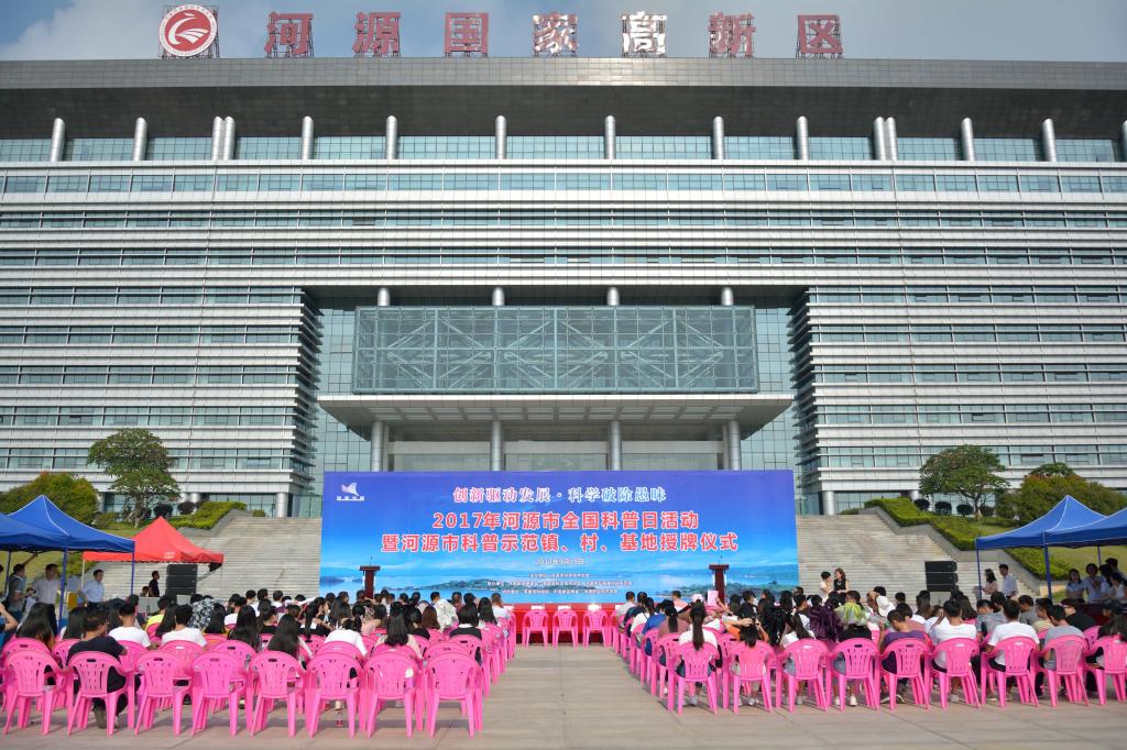 9月19日上午,河源市于高新区管委会广场举办“创新驱动发展•科学破除愚昧”2017年全国科普日活动暨河源市科普示范镇、村、基地授牌仪式。市委常委、副市长、深河指挥部总指挥、市高新区党工委书记王卫,市科协党组书记、副主席陈春林等领导出席了本次活动并讲话,市科普示范单位、我校部分学子等参与了此次活动。