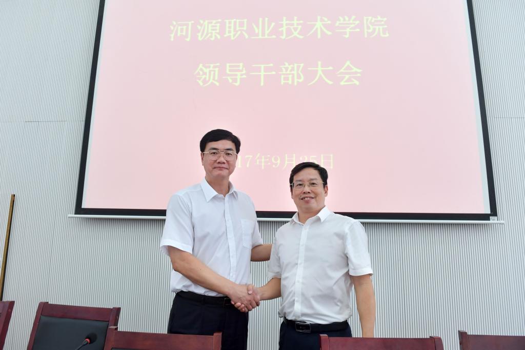 9月25日上午,我校召开领导干部大会,新老书记顺利交接。市委书记丁红都出席会议并寄语我校党政班子要精诚合作,为河源率先振兴提供强有力的人才支撑。