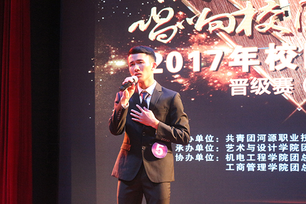11月2号晚,我校于艺术楼演播厅举行以“激扬青春旋律,唱响校园好声音”为主题的2017年校园歌手大赛十进五晋级赛。我校团委书记陈晓峰,艺术与设计学院院长杜伟祥、音乐表演专业主任刘颂章、音乐专业教师周艳妮等相关领导、老师担任了此次晋级赛的评委。