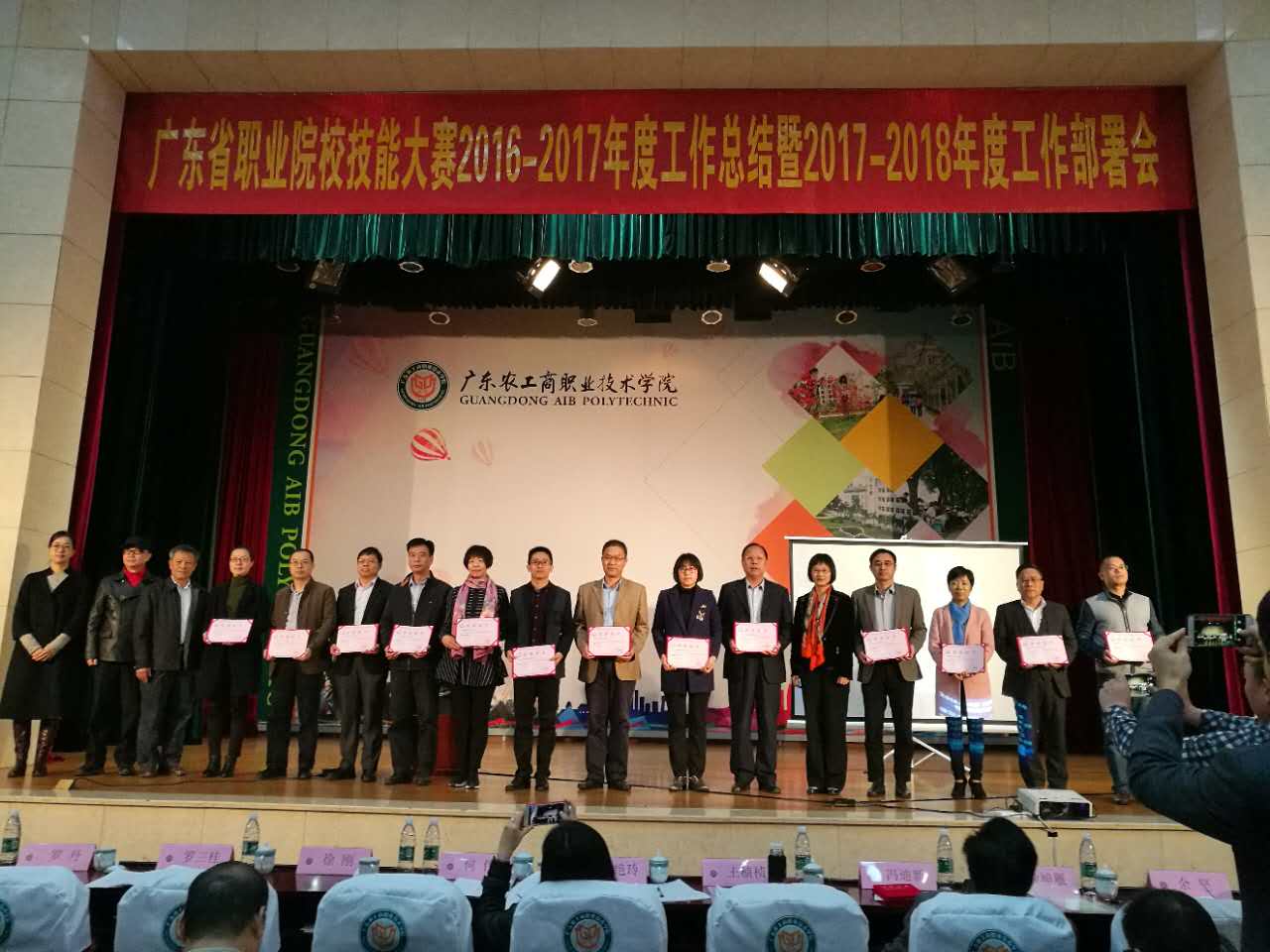 11月23日上午,我省职业院校技能大赛2016-2017年度工作总结暨2017-2018年度工作部署会议在广东农工商职业技术学院举行。教务处代表学校参加会议,并领取了广东省2016-2017年度高职院校技能大赛工作“特殊贡献奖”。