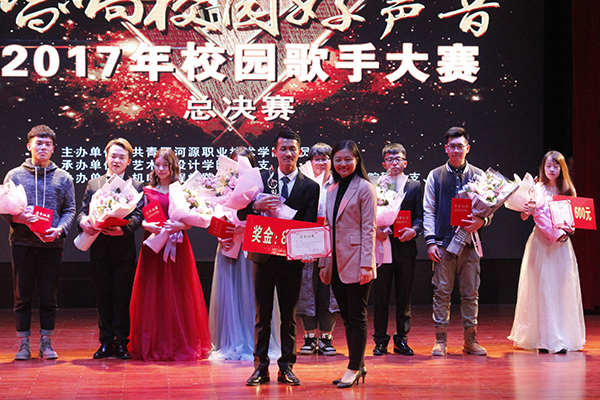 比赛期间,上届校园歌手大赛亚军李希博现身演播厅,为观众倾情演唱《大江东去》,大气磅礴、雄浑有力的歌声使得现场音乐氛围更加浓厚。经过四轮紧张比拼,最终5号选手赵悦童成功夺冠,1号选手刘源、2号选手吴翊君分别荣获亚、季军。赖小景副校长、团市委李冰副书记、艺术与设计学院杜伟祥院长先后为获奖选手颁奖。