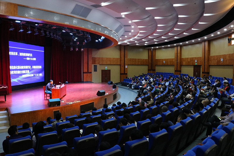 讲座中,罗俊教授围绕高校信息化建设这一主题,解读了当前高校信息化建设的应对策略,他指出,职业教育的信息化教学要在主要关注解决“进不去、看不见、动不了、难再现”难题的基础上,向更高层次、更广领域、更高水平推进,例如,要利用移动互联技术全面普及网络学习空间和线上线下混合教学模式;要利用智能技术加快建立自主、泛在、个性化学习体系。他强调,广大教师要不断改进信息化教学能力,不断丰富信息化教学资源,不断改进信息化教学模式,要充分发挥教育信息化引领教学的重要作用。