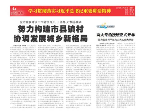 4.2018年3月26日,河源晚报报道《两大专函授班正式开学培养村干部、农民》如下: