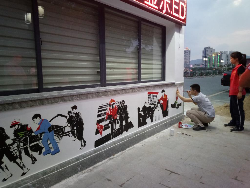 此次墙绘的主题是助人为乐,通过墙上的剪影画面颂扬中华民族的传统美德,传播社会的正能量,努力向“富强、民主、文明、和谐、美丽”的新时代迈进!墙绘期间,志愿者积极主动,认真负责,用心做到一笔一风景,手绘白墙变彩墙。活动坚持至天黑。