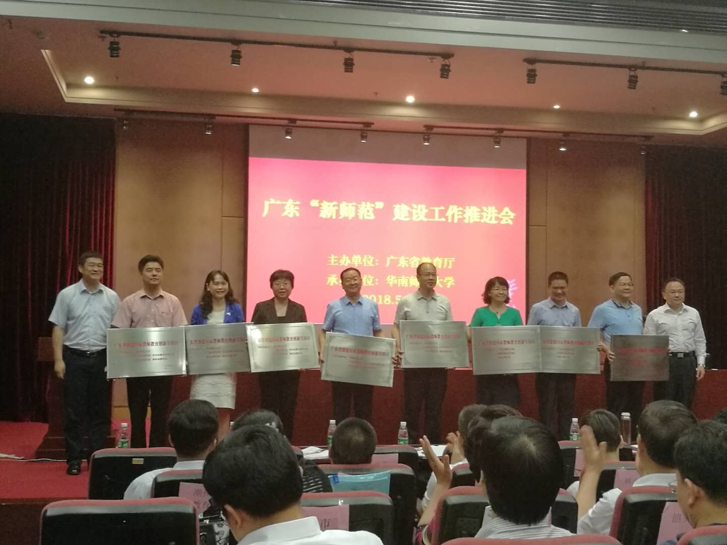 5月14日下午,广东省教育厅在华南师范大学召开了“新师范”建设工作推进会。省教育厅领导、全省各市教育局领导、开设师范类专业的高校领导,约120余人参加了会议。省委教育工委副书记,省教育厅党组副书记、副厅长邢锋和省委教育工委委员,省教育厅党组成员、副厅长王创出席会议并讲话。