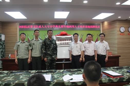 5月25日,我校成人高等教育武警河源支队大专班2018级新生开学典礼暨军地两用人才培养基地揭牌仪式在武警河源支队培训室隆重举行,标志着我校成人继续教育继政、校、行、企合作后又拓展了新的领域,在全省高职院校成人教育实现首家与军队合作办学。
