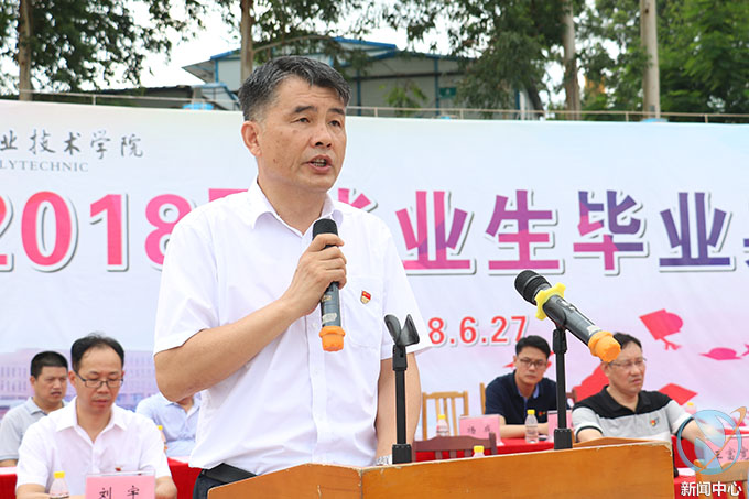 芒果满枝丫,栀子香四溢。6月27日上午,我校在足球场隆重举行2018届毕业生毕业典礼。党委书记韦荣、校长陈德清等领导出席本次毕业典礼,各处室、院(部)负责人,各二级学院副书记、团总支书记、师生代表及2018届全体毕业生参加典礼。毕业典礼由副校长陈农心主持。