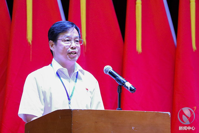 韦荣同志代表学校第二届党委向大会作了题为《高举习近平新时代中国特色社会主义思想伟大旗帜朝着省内一流国内领先目标奋勇前进》的工作报告。报告分为四部分:一是过去七年的工作回顾;二是今后五年的奋斗目标;三是今后五年的主要任务;四是全面加强党的建设。