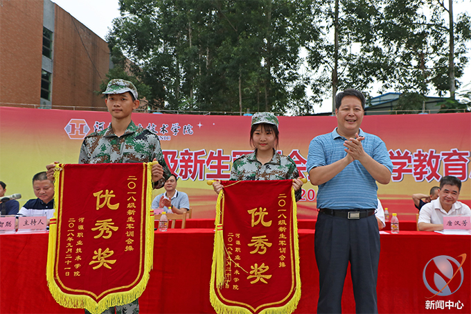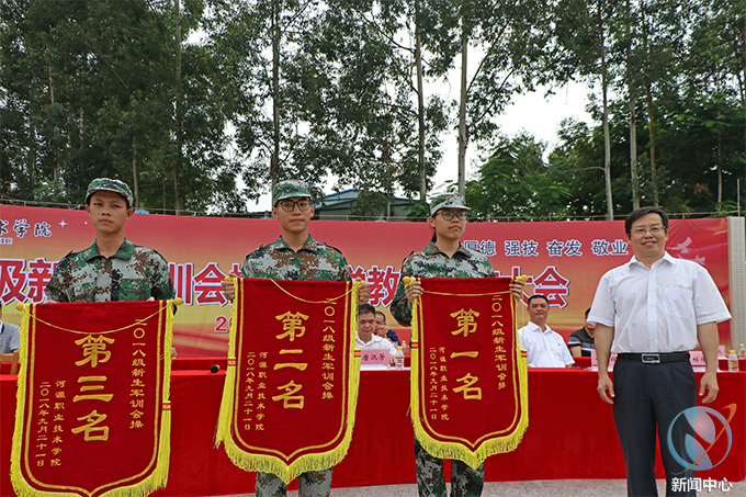 天朗气清,彩旗飘扬。9月21日上午,我校于足球场举行2018级新生军训会操暨入学教育总结大会。我校党委书记韦荣、副校长唐汉芳、陈农心,武警河源支队伍大队长伍时就出席大会。我校各处室、二级学院负责人、全体辅导员及2018级全体新生参加了总结大会。大会由学工处处长何智聪主持。