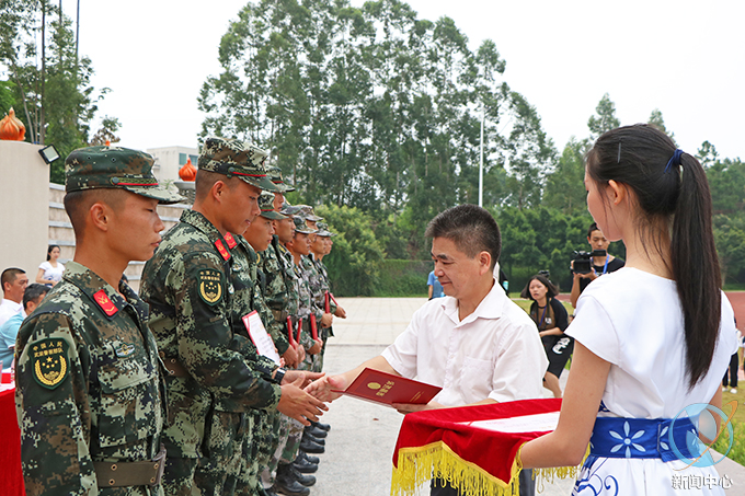 机电工程学院2018级陈博聪同学在发言中表示,“军训中明白集体的荣誉才是最高的荣誉”。武警河源市支队伍时就大队长对学员们在会操表演中的表现表示肯定,对我校组织工作的周到表示认可,他勉励学员们严于律己,争取新的进步。