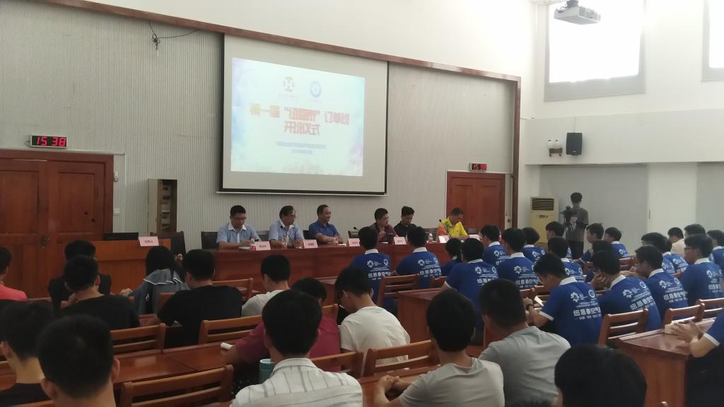 9月25日下午,我校与广东纽恩泰新能源科技有限公司(以下简称“纽恩泰”)共同举行“纽恩泰定向班”第一届开班典礼。参加人员有副校长唐汉芳、科研处处长邱远,纽恩泰董事长赵密升、副总经理李建国、人力资源中心总监蒋诗洋,电信学院院长杨黎以及第一届“纽恩泰定向班”的全体学员及师生代表。电信学院校企办主任黄舒主持开班仪式。