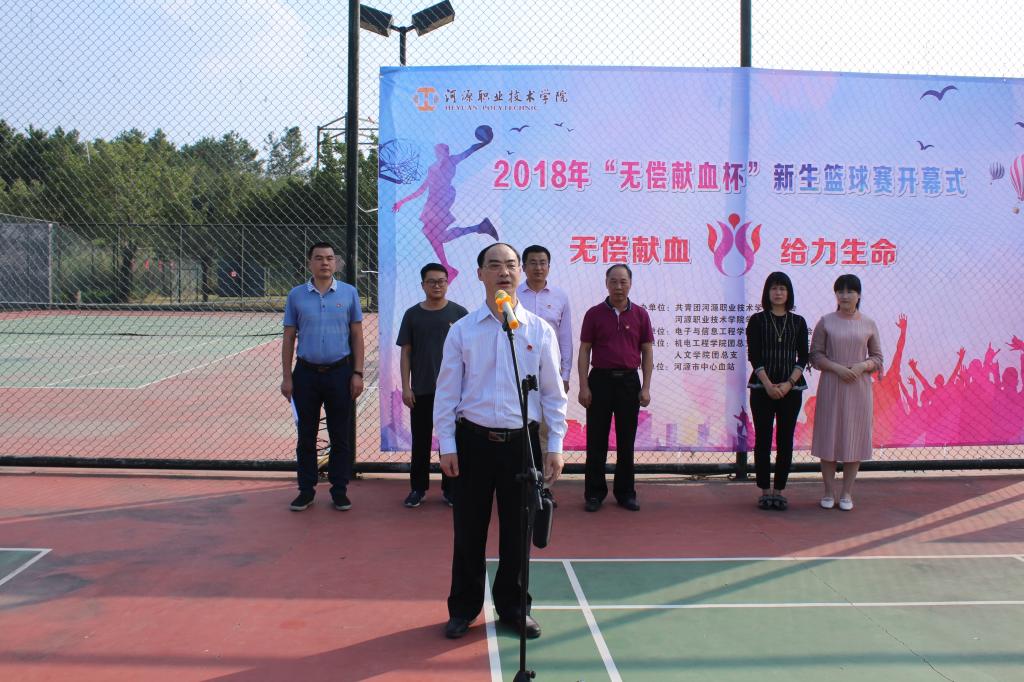 赖小景副校长宣布必一手机登录入口2018年“无偿献血杯”新生篮球赛开幕