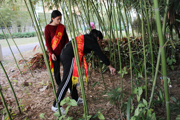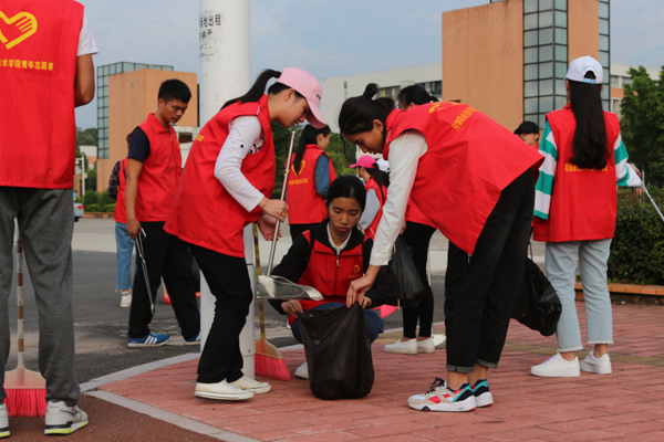 我校志愿者们高举队旗,手拿清洁工具分别在贤能广场、荟萃湖周边、教学楼、实训中心、学生饭堂等校内每个角落及学校创文责任区开展全方位、地毯式的卫生清洁活动。校园内一批批身穿“红马甲”的身影所散发的青春气息洋溢了整个校园,活动氛围浓厚,并取得良好效果。