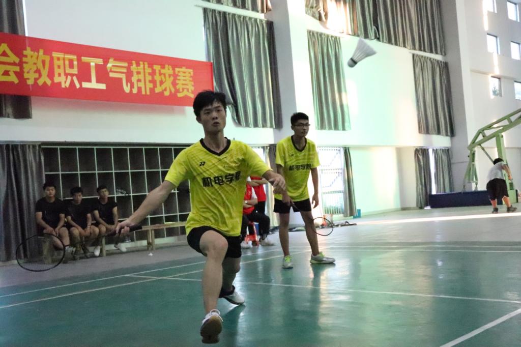 活动伊始,总裁判长宣布了此届新生羽毛球赛比赛结果,并由各领导及老师为获奖的代表队进行颁奖。在全体人员合影留念后,精彩的师生羽毛球友谊赛拉开序幕。友谊赛分为男子双打、男子单打和混合双打三项,在三个场地同时进行。本着“友谊第一、比赛第二”的原则,参赛师生在比赛中积极拼搏,高远球、搓球、扣杀、吊球等各路球技被师生们演绎得淋漓尽致。赛场上选手们挥洒着汗水,享受着比赛的乐趣,迸发着对运动的热情,选手们高超的球技博得了场外师生们的阵阵掌声和一片喝彩。