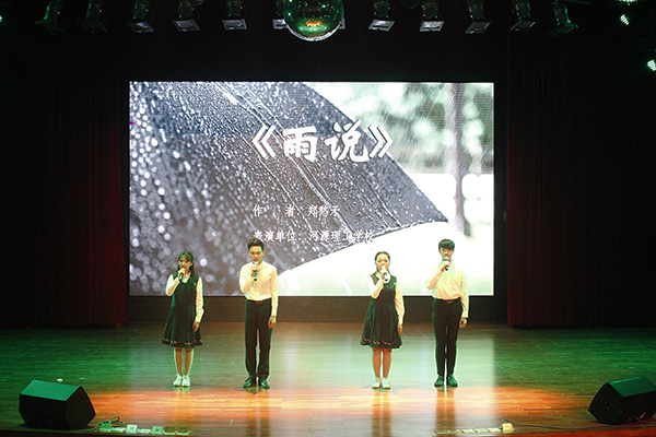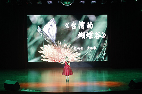 在启动仪式后,台海两岸美文朗诵会正式开始。无论是那般柔软轻盈,绵绵不断充满美妙诗情画意的《雨说》;抑扬顿挫饱含深情地讲述抗战时期英雄之城与巴渝儿女的动人往事的《请铭记,雾重庆》;那生动灵秀演绎了宝岛阿里山高山行云流水、清新灵动的笛子独奏《高山青》;还是那深沉有力、激情豪迈歌颂祖国壮丽山河、文明历史、伟大民族精神的《我骄傲,我是中国人》;或是那龙飞凤舞脉搏相连的集合《大写的中国》。一首首春弦夏诵,声情并茂的诗歌朗诵纷至沓来,为现场观众呈现了一场视听盛宴,展演选手的投入朗诵和生动表演,赢得现场掌声阵阵。最后,活动在领导老师与参演人员合影留念中拉下帷幕。