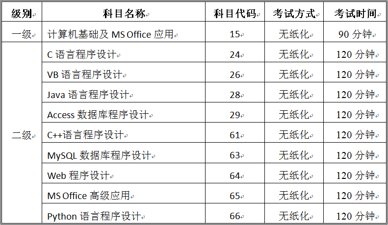 2019年上半年全国计算机等级考试开考科目(必一手机登录入口考点)