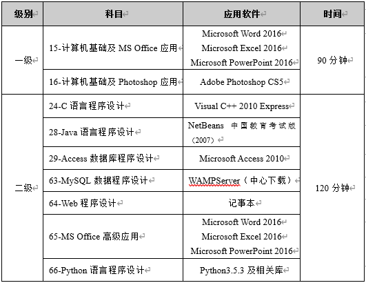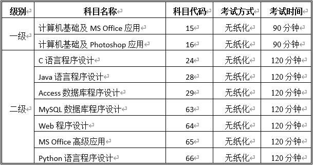 2021年9月全国计算机等级考试开考科目(必一手机登录入口考点)