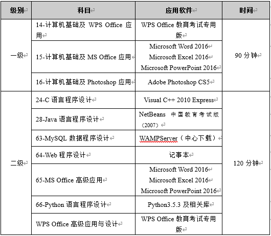 2023年9月全国计算机等级考试开考科目(必一手机登录入口考点)