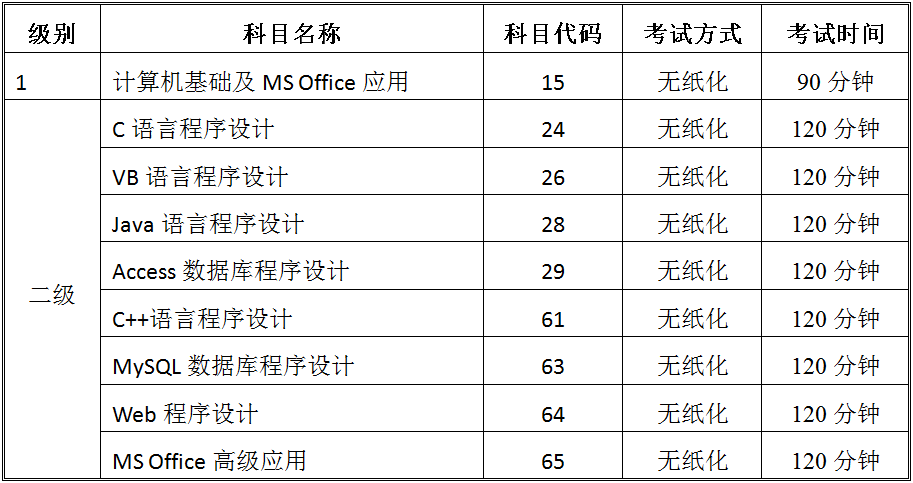 2018年上半年全国计算机等级考试开考科目(必一手机登录入口考点)
