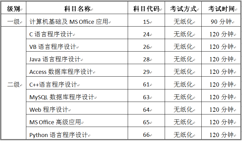 2018年下半年全国计算机等级考试开考科目(必一手机登录入口考点)