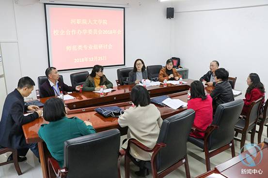 2018年恰好“校企合作办学委员会”换届,罗春娜院长新一届主任委员、委员颁发聘书,并希望得到全体合作单位能够继续加强与我院的合作、支持我院专业建设和发展。为了进行更加具有针对性的交流学习,与会人员分为职业类专业组和师范类专业组两组分别在行政楼B601、C309进行研讨。