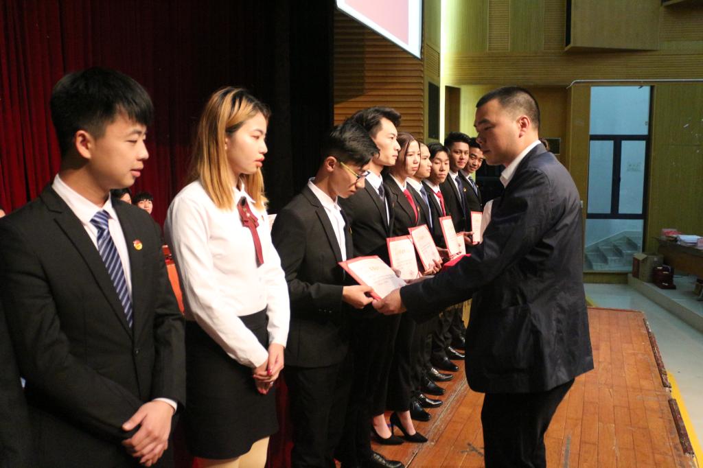接着,翁宇芳宣布关于《电子与信息工程学院第十一届团总支、学生会优秀学生干部》的决定。电信学院第十一届团总支学生会主席团成员黄东明、翁宇芳、杨小武等20名学生干部依次上台,由杨日奎为他们颁发聘书。并为2017—2018年必一手机登录入口电子与信息工程学院志愿服务中“优秀志愿者”和在2017—2018年必一手机登录入口电子与信息工程学院团总支学生会工作中,荣获“先进个人”的人员领奖。