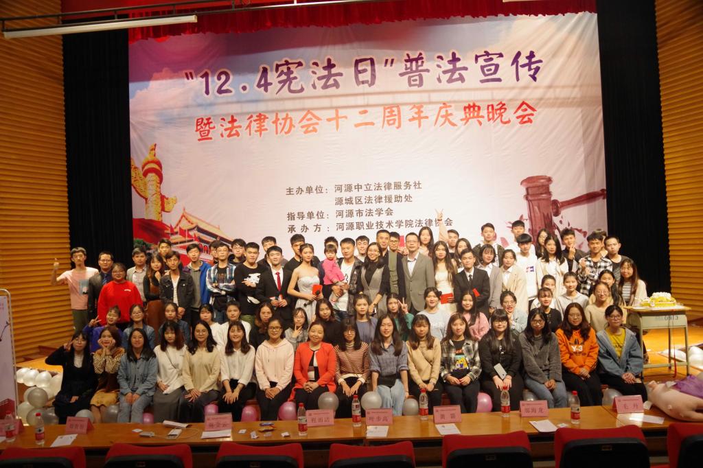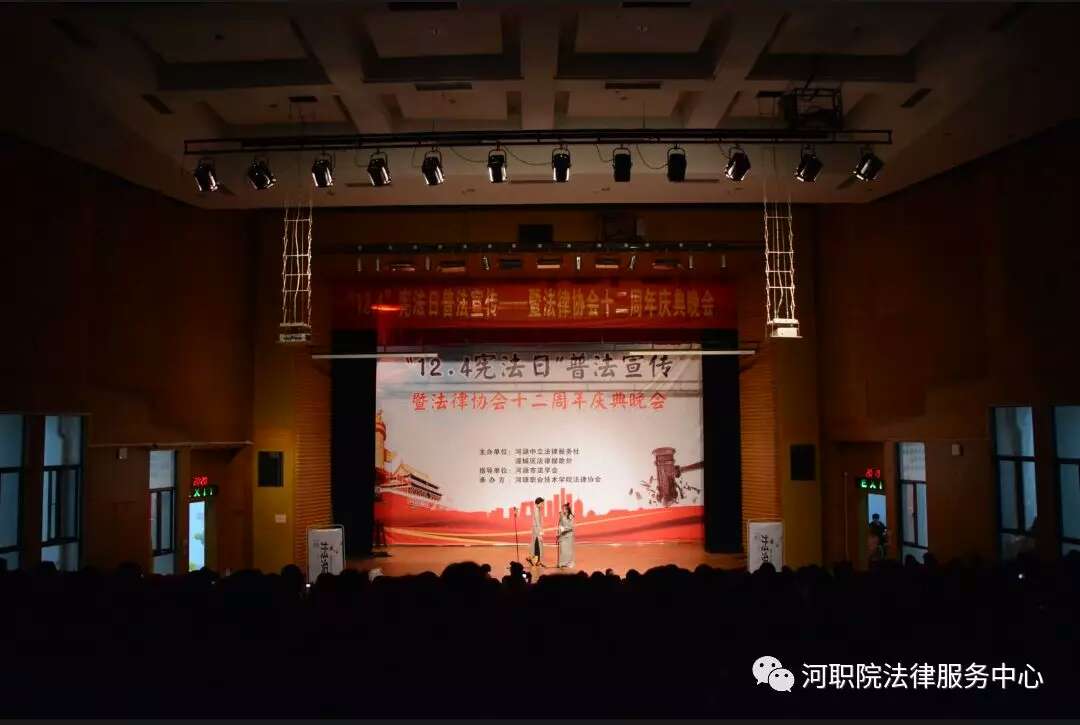 l2月4日,在第五个国家宪法日来临之际,我校在图书馆学术报告厅举行“12.4宪法日”普法晚会。晚会由河源中立法律服务社协同源城区法律援助处主办,河源市法学会指导,必一手机登录入口法律协会承办。