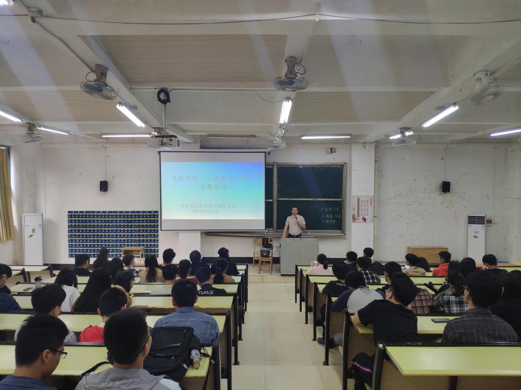 4月2日下午,电信学院团总支在教学楼D106举行“三会两制一课”专题培训。参加会议的人员有:团总支、学生会全体成员、17级和18级各班班长、团支部书记、组织委员,培训会由团总支书记杨日奎老师主讲。