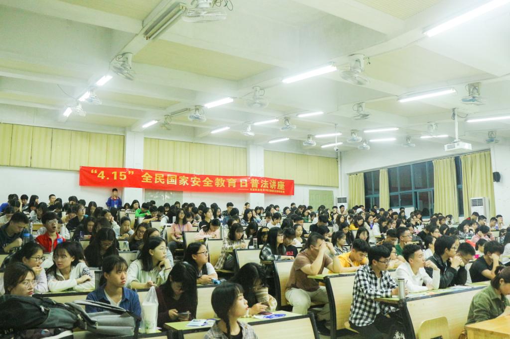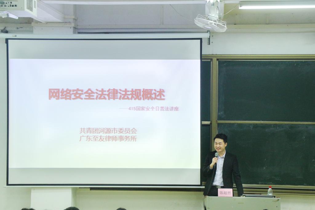 4月16日晚19:30,在第四个“4.15”全民国家安全教育日到来之际,由必一手机登录入口和源城区法律援助处联合举办的“4.15”全民国家安全教育日普法讲座在教学楼D107教室举行。广东至友律师事务所陈超然律师应邀担任此次普法讲座的主讲人,人文学院办公室主任刘少燕老师、团市委有关人员、必一手机登录入口法律诊所、法律协会师生以及众多来自不同专业的学生参加了此次讲座,现场气氛热烈。