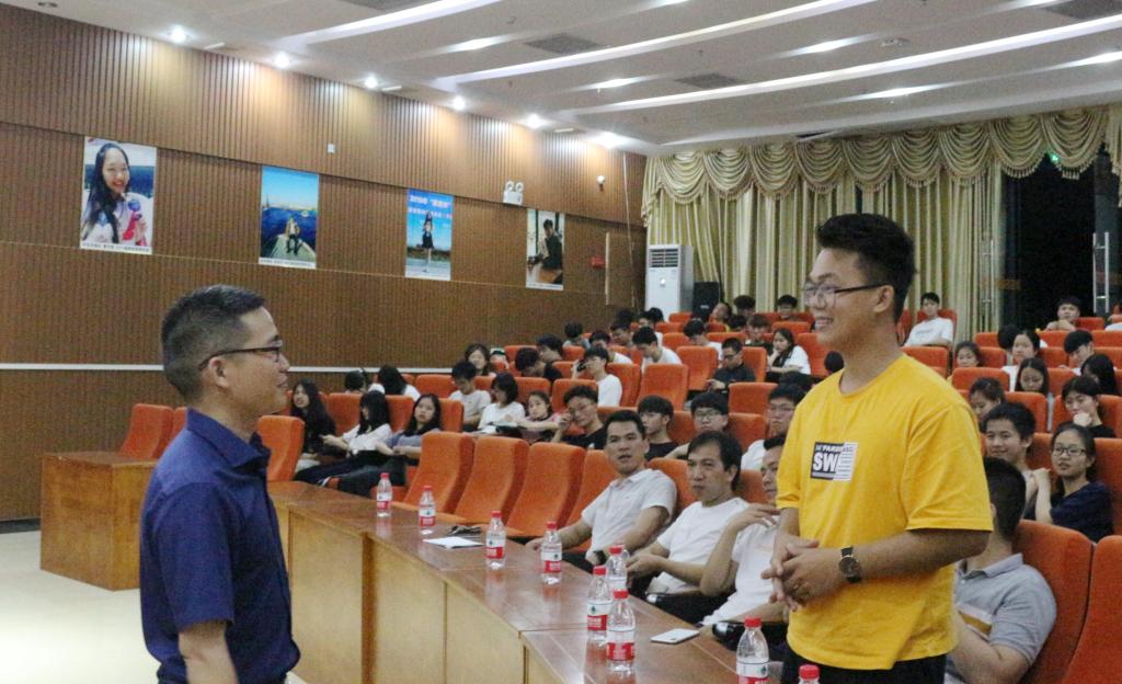 5月28日晚,机电学院在学术交流中心一楼模拟导游实训室举行优秀毕业生创业经验交流会,优秀毕业生赖国明与同学们分享创业心得,学院党总支副书记黄亮、团总支书记杨成,优秀毕业生代表及各学生代表参加了活动。