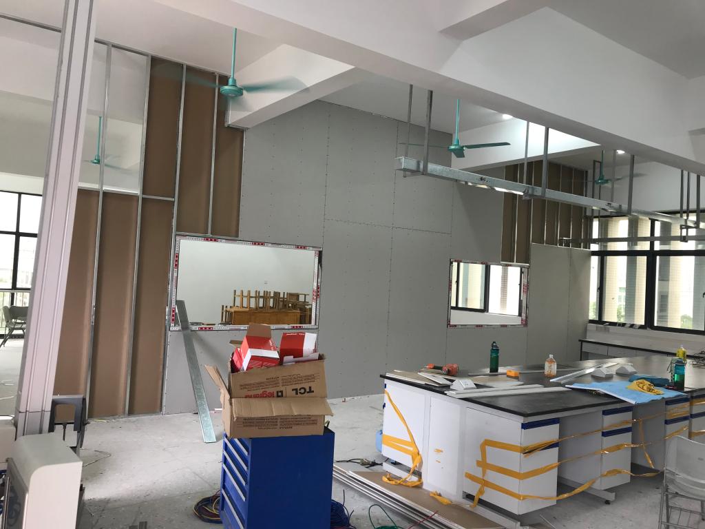 为保证新学期开学前我校实训四期各实训室能正常投入使用,按照学校工作安排,7月上旬已完成了实训室的整体搬迁,实训室布线等后续工作均正在有条不紊地进行中。学校领导非常关心实训四期实训室搬迁的后续工作,陈德清校长和王小宁副校长多次到工作现场检查工程进度及实施情况,要求必须保证工程质量和进度,安全施工,确保各实训室在开学时能正常使用。