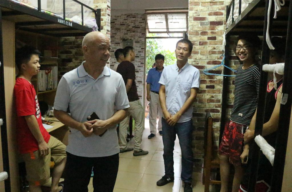 9月5日下午,我校党委副书记叶国英、副校长王小宁在机电学院钟建坤院长等人的陪同下,到机电学院A区男生宿舍走访。