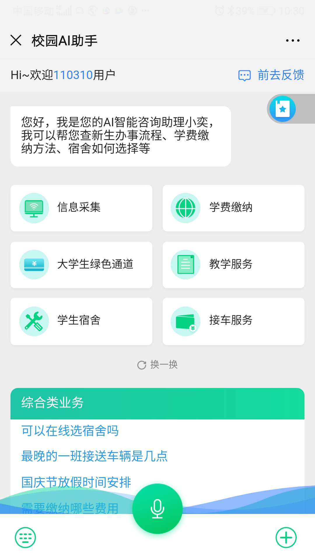 据廖宁老师介绍,今年,新上线的校园AI助手自动为新生回答问题,在迎新期间,AI助手21天共为新生提供了29754次服务。其中9月15日单日提问量最高,有2251次。日均为新生解决问题1417个,准确率高达93%。从校园AI助手的运营报告中可以了解到,今年新生问题的热门关键词前5名分别是:宿舍、学校、可以、分配、军训,以上信息也能为我校管理部门决策提供参考。
