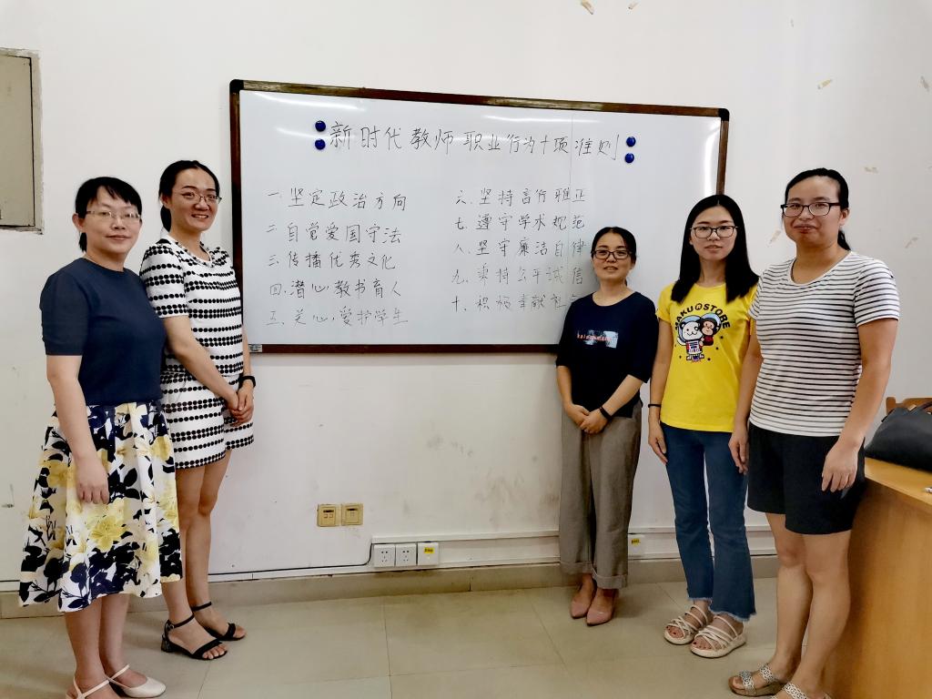 各专业主任解读《新时代高校教师职业行为十项准则》主要内容,并传达了学院2019年师德建设主题教育月活动实施方案。