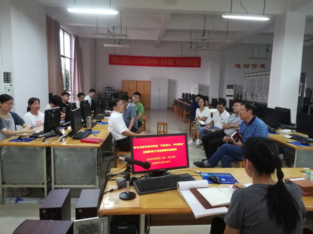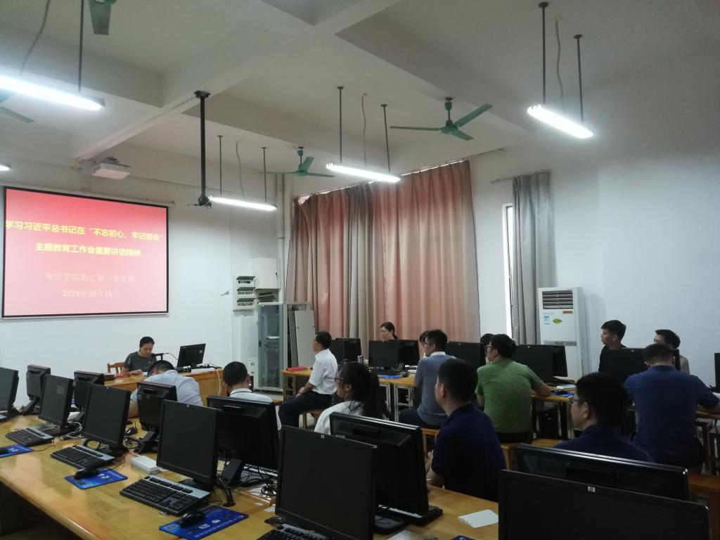 为了进一步推动学校“不忘初心、牢记使命”主题教育深入开展,对照《必一手机登录入口关于开展“不忘初心、牢记使命”主题教育实施方案》,结合本支部实际情况,电信学院教工第一党支部于10月15日下午召开党员大会,共同学习习近平总书记关于“不忘初心、牢记使命”主题教育工作会议重要讲话精神。学校党委韦荣书记作为支部成员参会,电信学院教工第一党支部全体党员参加会议。