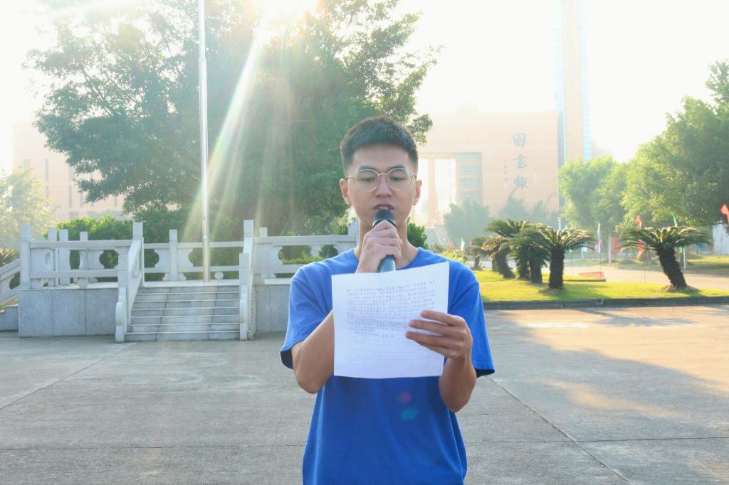 升旗仪式后,来自2017级智能控制技术1班的叶焕彬同学作为学生代表发言。叶焕彬同学表示,和平与发展已成为时代的主题,书写祖国美好篇章少不了每个人的努力,拥抱祖国美好明天则少不了和平的信念;同学们应铭记历史、缅怀先烈,坚定不移的走和平发展道路,树立人类命运共同体意识。同时,叶焕彬号召,同学们要将个人的理想同祖国的前途、民族的命运紧密联系,从身边的小事做起,扎实学习专业知识,练就过硬本领。