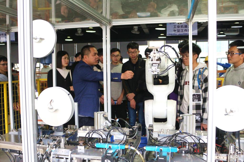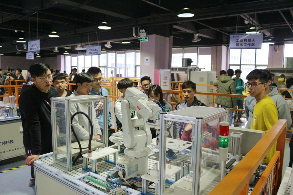 为了让学生更好地了解工业机器人行业领域的发展现状,12月14日和15日,机电学院钟建坤院长率模具设计与制造、数控技术、工业机器人技术、智能控制技术等专业师生及大学生职业素养能力提升高级班全体成员赴东莞汇邦机器人职业培训学院(以下简称“汇邦培训学院”)参观学习。