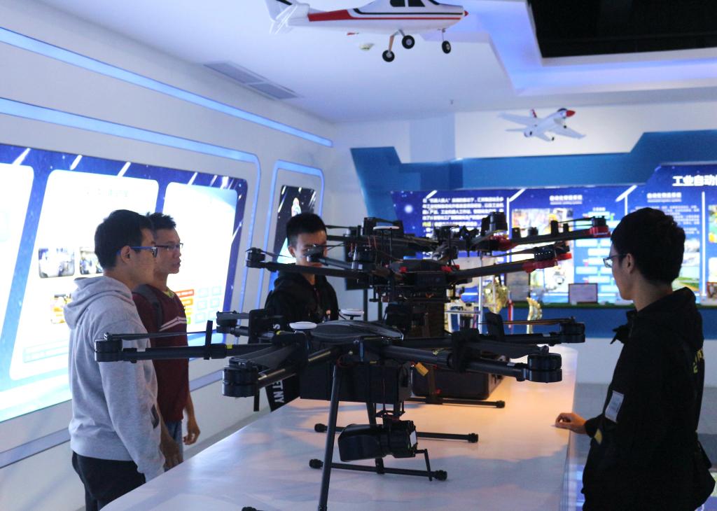 到达汇邦培训学院后,在工作人员的带领下,师生们在汇邦教育集团机器人体验展示厅参观了机器人和无人机,通过工作人员讲解机器人的操控与编程后,同学们自己动手尝试启动机器人并一起讨论其操作以及应用技能。随后,同学们参观了工业机器人综合应用实训区,参观期间同学们都表现出了极大的好奇心和学习的热情,积极提出自己疑惑的问题和想法与老师探讨交流,老师对同学们所提出的问题也进行详细的解答,并为同学们仔细讲解各个机器人工作站应用的原理。