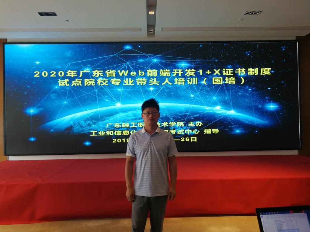 三是组织相关教师参加Web前端开发专业带头人培训。2019年10月15日,我院组织常贤发老师参加了2020年广东省Web前端开发1+X证书制度试点院校专业带头人培训(国培)。培训主要对Web前端开发考试的知识点和考务系统、考点管理系统、监考系统和考试系统进行了详细的介绍。