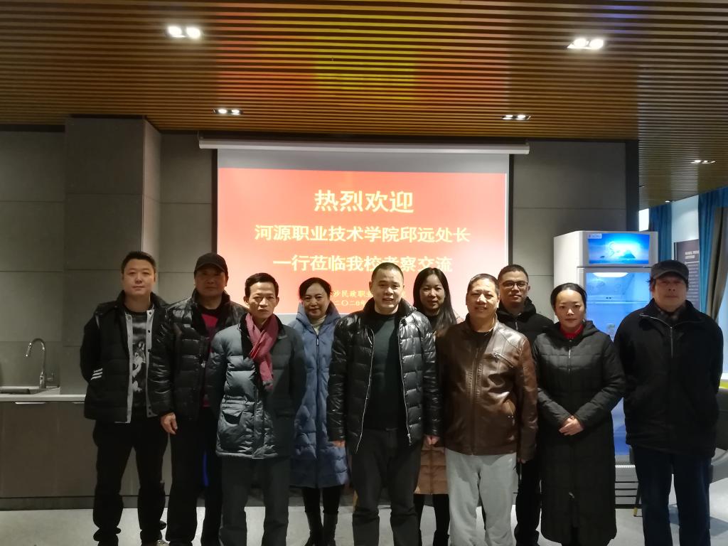 为学习借鉴先进经验,推动我校教师发展中心建设工作,2020年1月2日,质量管理处邱远处长率队赴长沙民政职业技术学院学习交流。长沙民政职业技术学院质量监控处祖国建处长、教务处罗勇处长、发展规划处肖辽亮处长等热情接待了我校一行。
