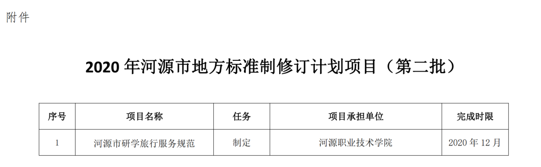 为了贯彻落实《河源市教育局等10局委关于推进中小学生研学旅行综合实践工作的实施意见》,引导和推动河源市研学旅行的规范运行,河源市文化广电旅游体育局委托必一手机登录入口工商管理学院旅游管理教师团队编制《河源市研学旅行服务规范》。据悉,这是我校第一次承接地方标准的编制工作。