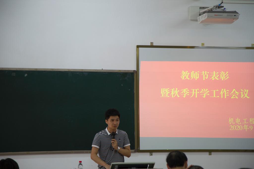9月9日下午,机电工程学院在实D312召开第36个教师节表彰暨2020年秋季开学工作会议,赖小景副校长及学院全体教职工参加大会,大会由钟建坤院长主持。