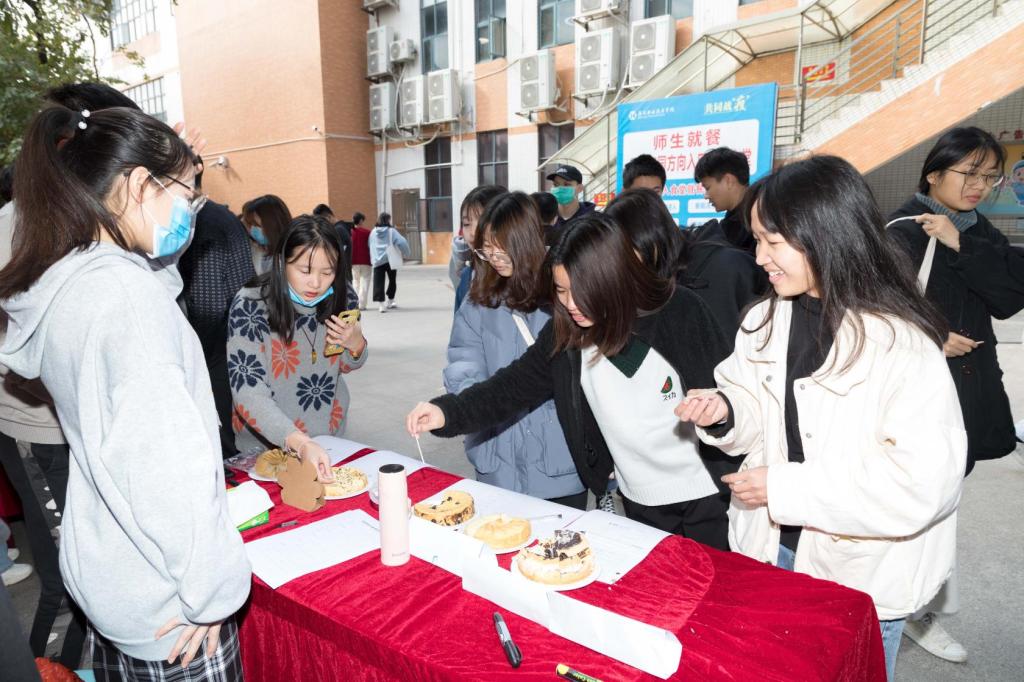 食品营养与检测专业举办的戚风蛋糕制作与品鉴比赛于1月4日在实训楼B404黄酒酿造实训室进行,比赛分上、下午两个时间段进行,共有20组40位同学参加比赛,评委们分别从味道、新颖性以及弹柔性等方面做了全面的考核和点评,并于1月5日在学校A区饭堂门口进行全校性的展示和品鉴。
